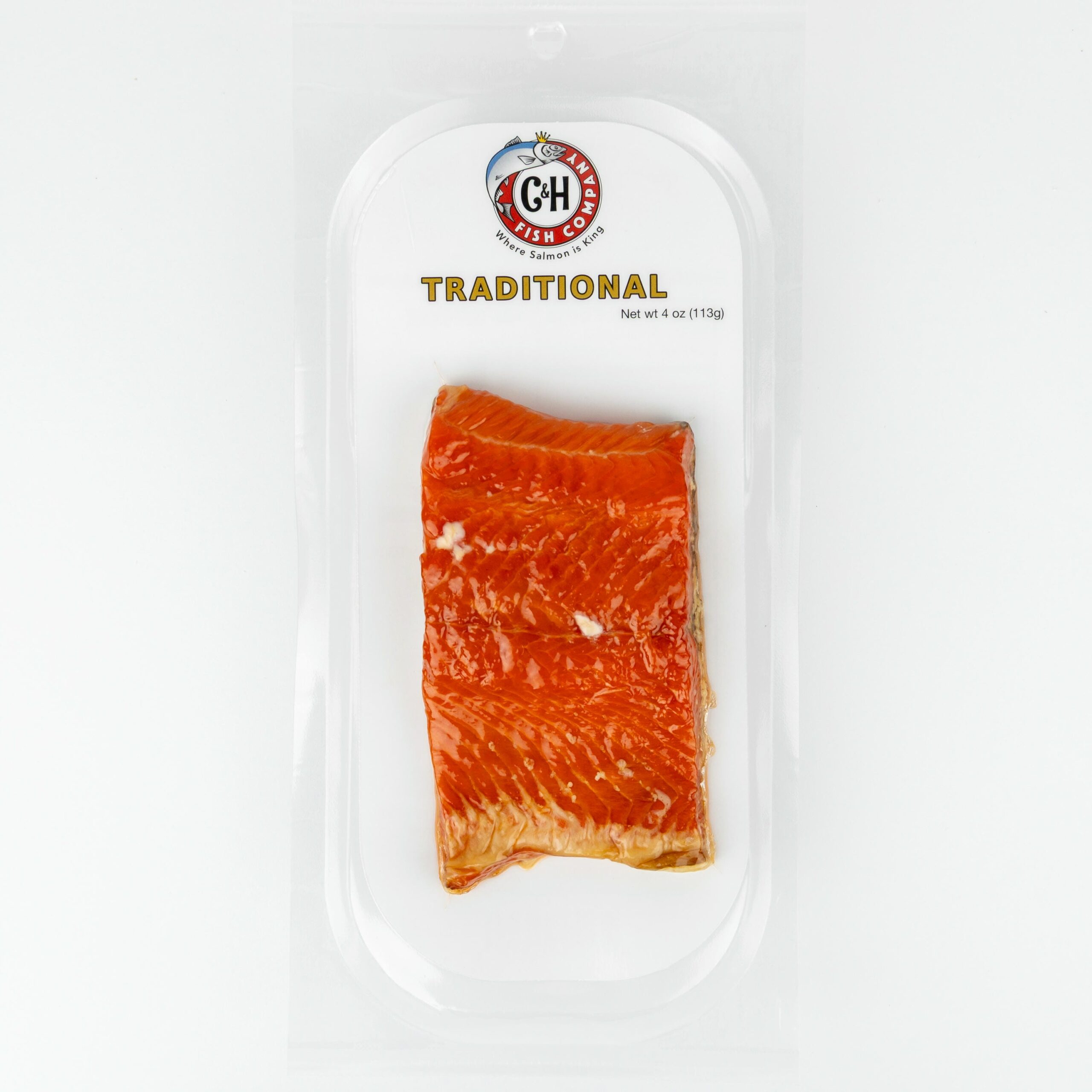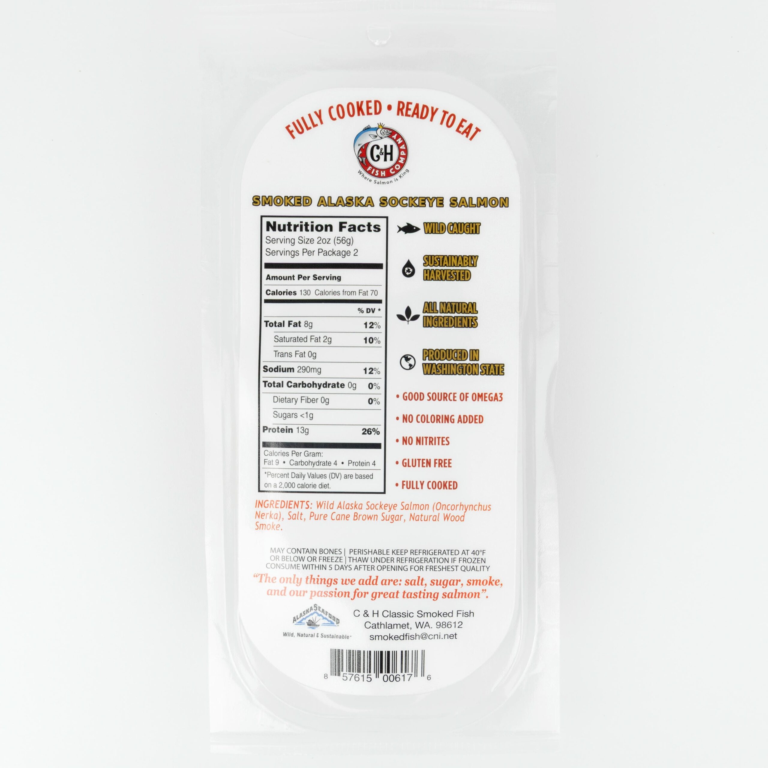 C&H Smoked Fish Smoked Sockeye Salmon is a premium product known for its rich, deep flavor and firm texture. The sockeye salmon is expertly smoked to enhance its natural taste, offering a smoky depth that perfectly complements the fish’s vibrant, slightly sweet, and robust flavor. The smoking process gives the salmon a satisfying, savory finish, while still preserving the freshness and quality of the fish. Each bite delivers a perfect balance of smokiness and the fresh, buttery taste of high-quality sockeye, making it a treat for seafood lovers who appreciate a bold yet refined smoked salmon experience.